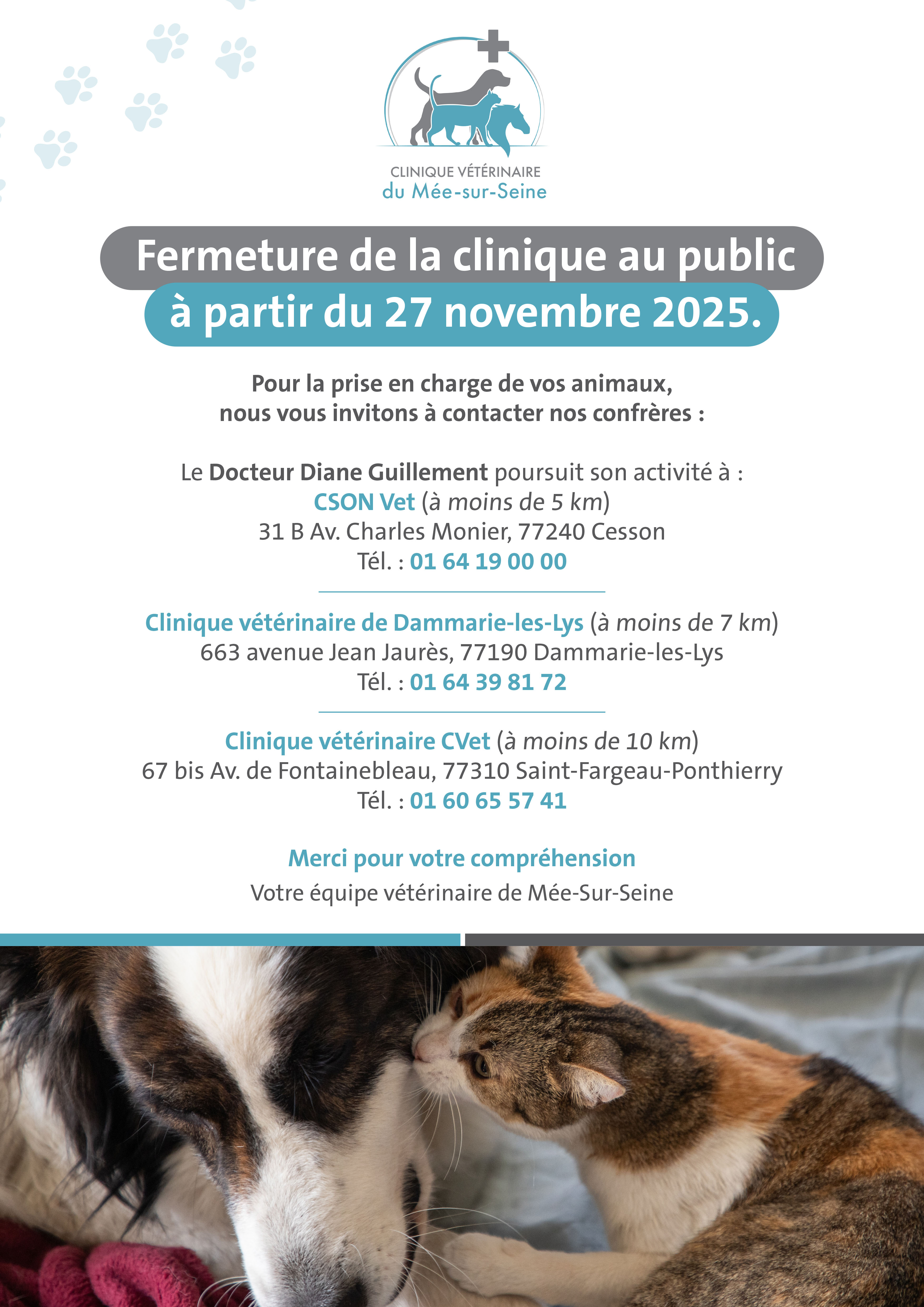 Fermeture de la clinique à partir du 27 Novembre 2025